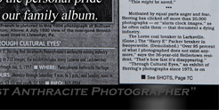 Almost twenty years ago it was the dozen+plus regional newspapers which graciously championed “the call to Hardcoal Culture” by letting everyone know of the parade of local presentations throughout our region leading up to the enormous presentation of the “Through Cultural Eyes” Show at the Anthracite Heritage Museum in Scranton. Thanks to the power of their influence, it was an unprecedented success. Thousands of people saw the articles, and were directed on to the presentations, and ultimately the show.